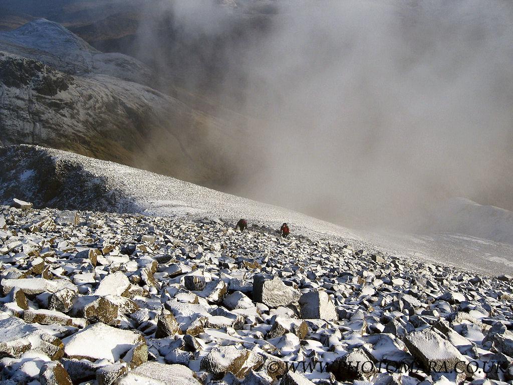 Peter Banks (left) closely followed by Paul McCarthy on the final push up the southern slopes of Ben Nevis, Britain's highest summit Camera: Canon Digital IXUS 400 [full size 1024px X 768px]