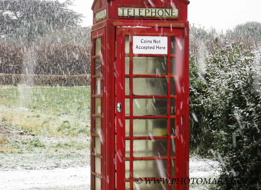 Here's a traditional British Red Public Telephone Box (K6) in Great Limber that wont take any money from you, no matter what the weather. This design of telephone box dates from 1935