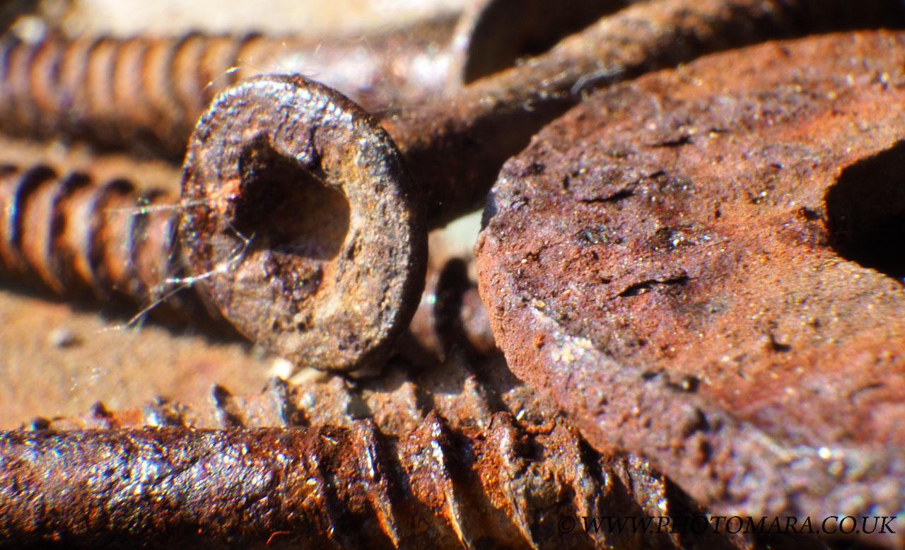 Discarded fixings being worn down by weather and time, dancing their magical patterns Camera: Olympus OM-D EM10 II [full size 1280px X 778px]