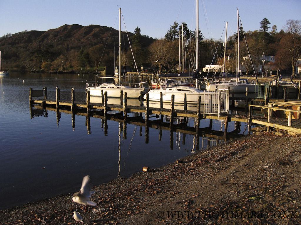Yachts moored up on Lake Windermere at Ambleside with only the gulls for company