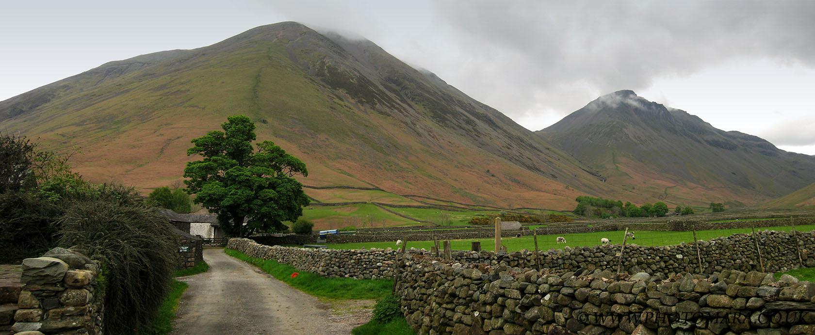 View from Wasdale looking towards Kirk Fell and Great Gable Camera: Canon Digital IXUS 400 [full size 1680px X 691px]