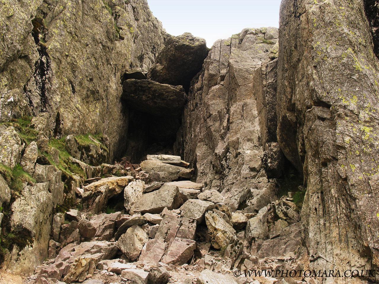 This is known as the Bad Step on the Crinkle Crags ridge walk, a short climb is required to negotiate this obstacle