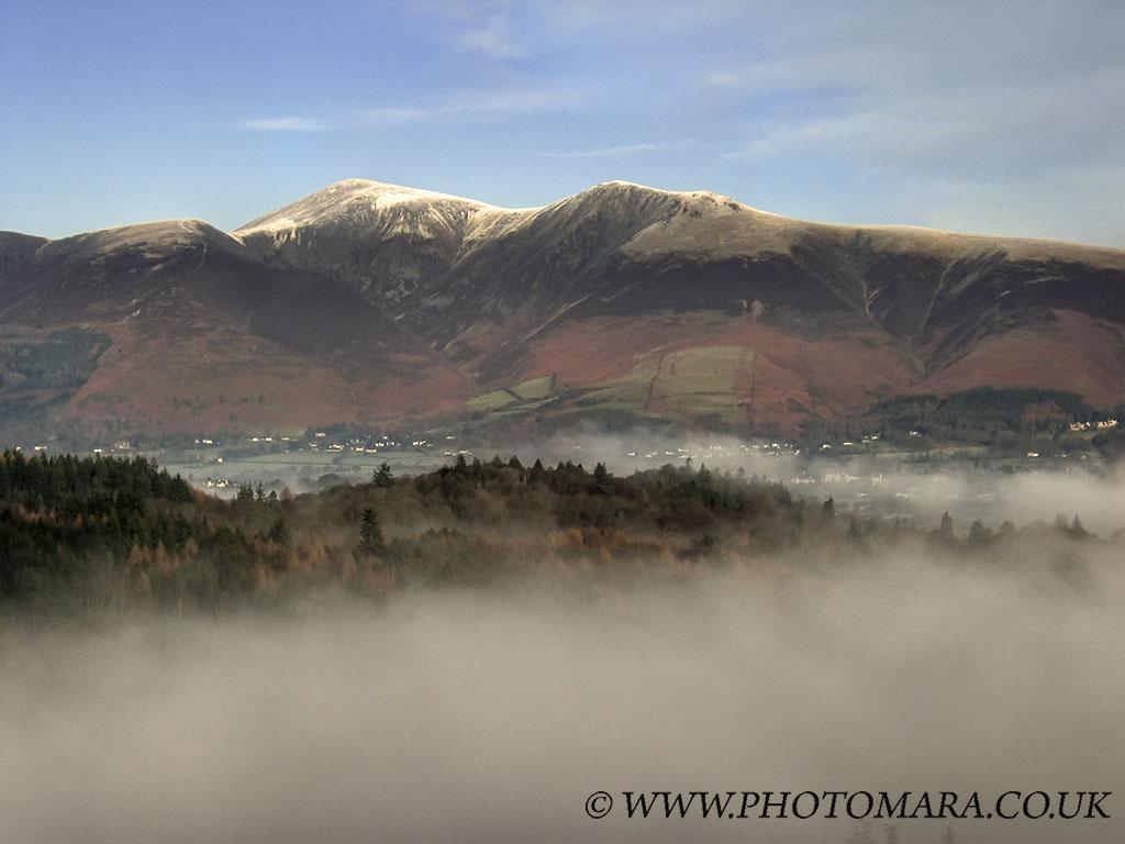 Swinside and Skiddaw behind rising above the winter mist Camera: Canon Digital IXUS 400 [full size 1024px X 768px]