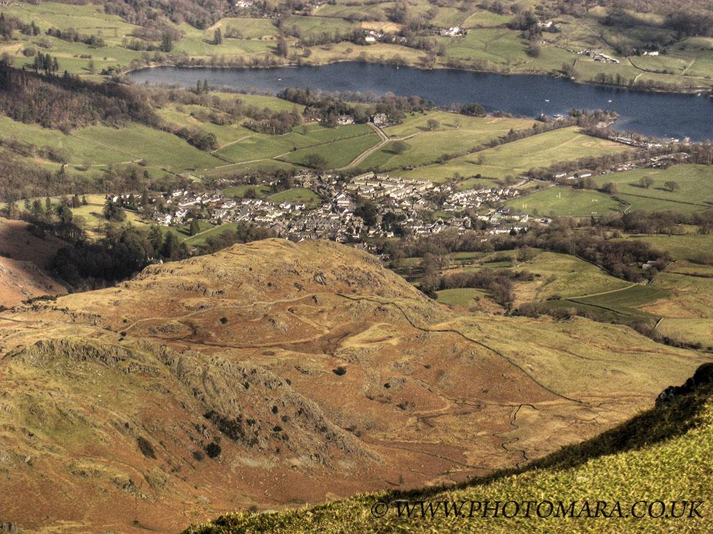 Date/Time 04/04/10 16:28:45 IPTC: Caption Looking over The Bell and Foul Scrow towards Coniston and Coniston Water From The Old Man of Coniston 2635'