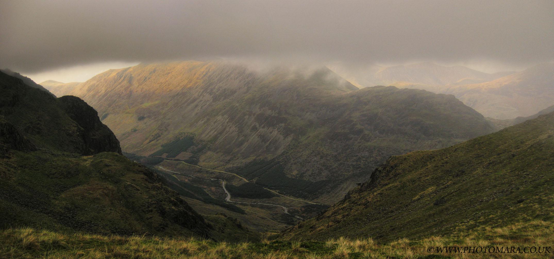 Ennerdale and Buttermere Fell viewed from near Black Sail Pass Camera: Canon Digital IXUS 80IS [full size 2150px X 1004px]